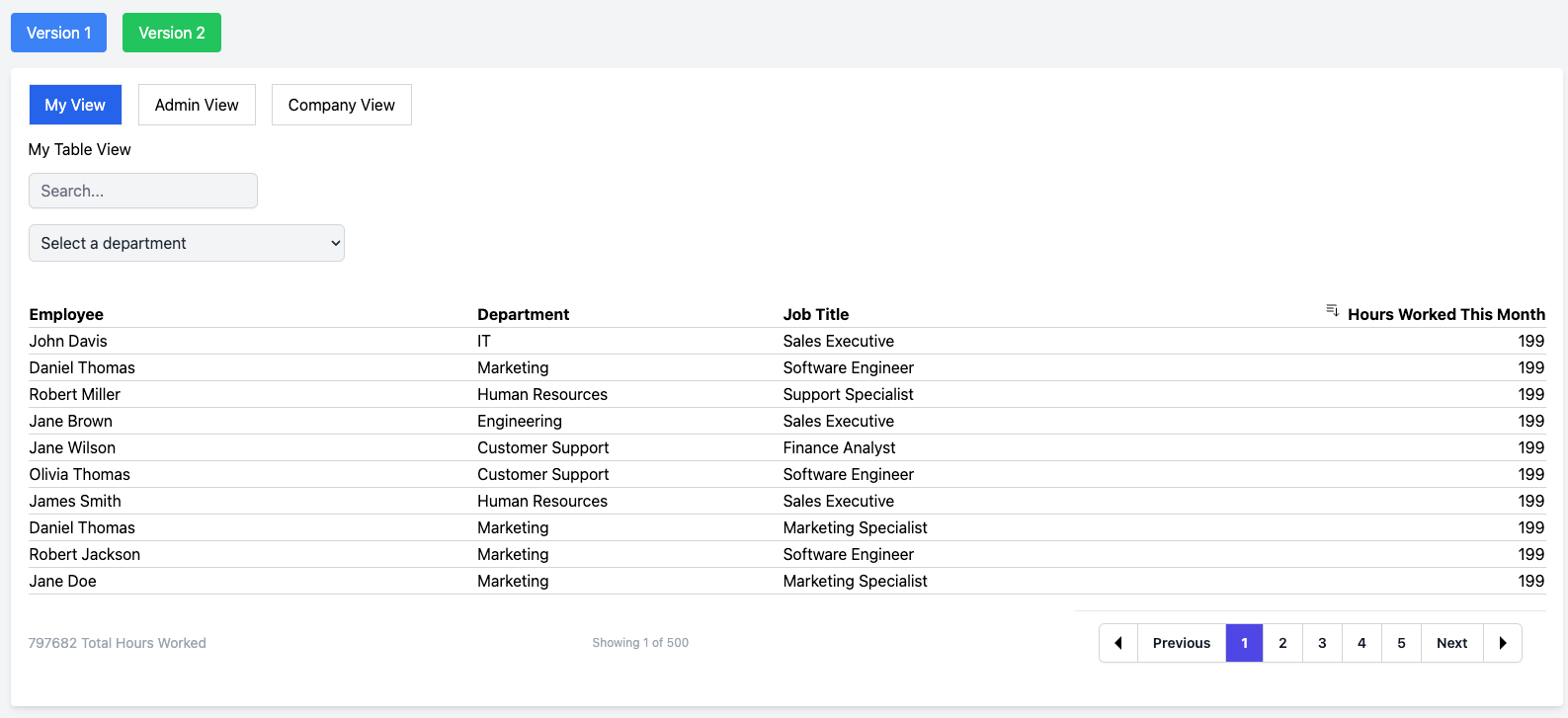 useMemo: This memoizes thetotalHoursWorked, recalculating only when the data changes.- Column Definitions: We define a set of column configurations for the table. Each column specifies: