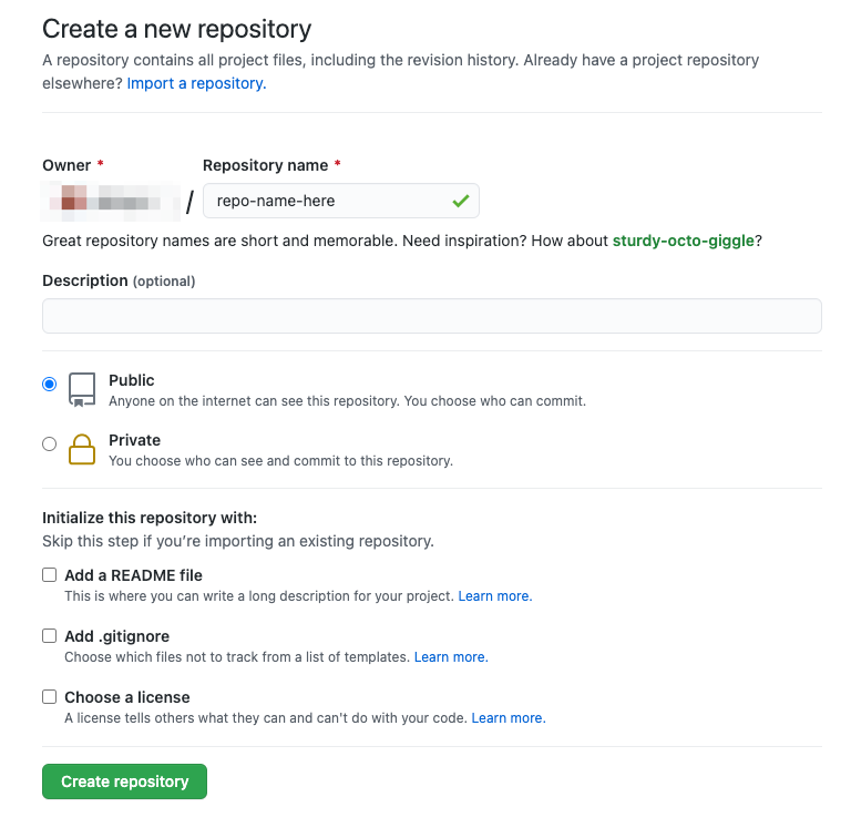 Go ahead and "Create repository."