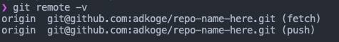 Go ahead and copy the top git remote add origin git... command in that section and paste it into your terminal, press enter. You won't see any output from the command line other than the command went through. To check your remote: