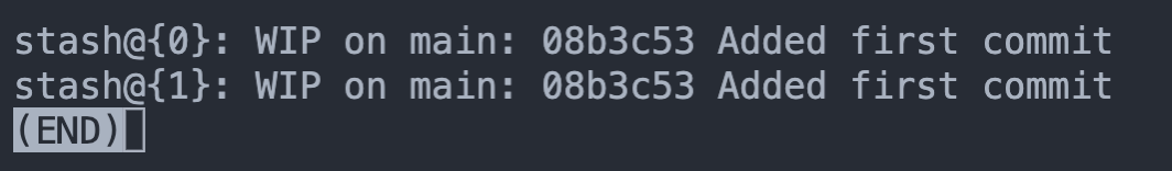 But you'll notice that you now have the same message for a second item that has been stashed. Run git stash list and see your stash list.