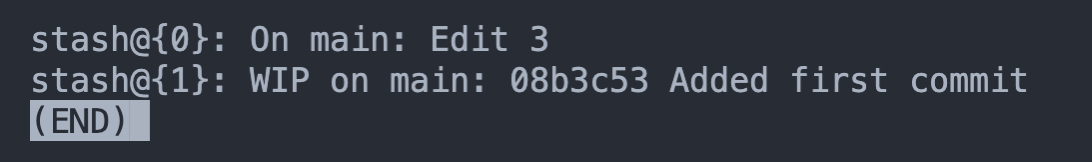 git stash push -m "Edit 3"You'll see that edit 3 is removed from our file.